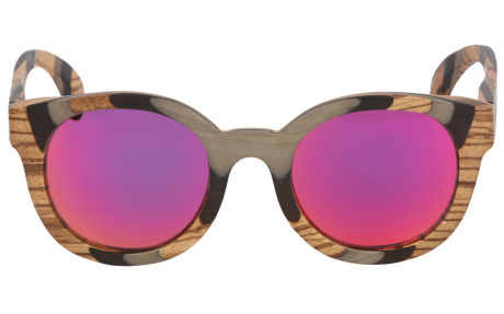 The LK: newly released and already making their mark! These sunglasses were inspired by the timeless bold wayfarer with flat edges and super round lenses.The frame is made from soild recycled wood and features a large round front, pink / red mirrored lenses and spring hinges.